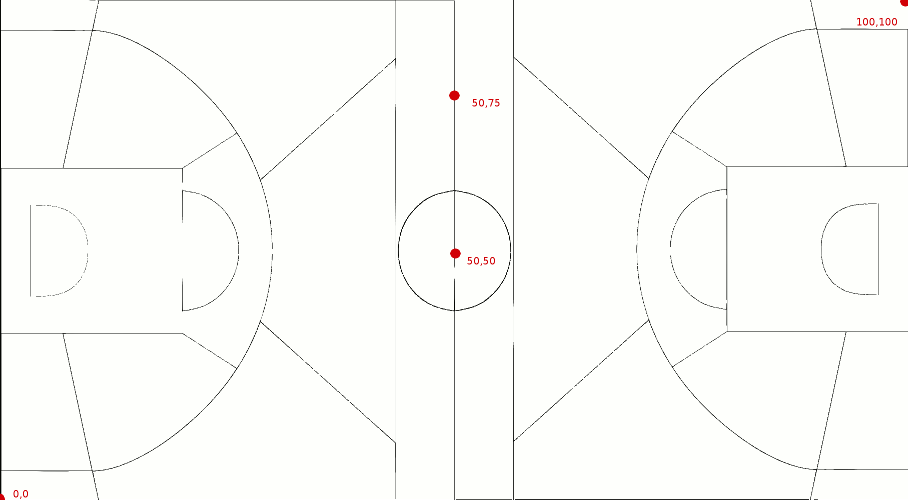 basketball court. The origin (0,0) is the bottom left corner of the image meaning the